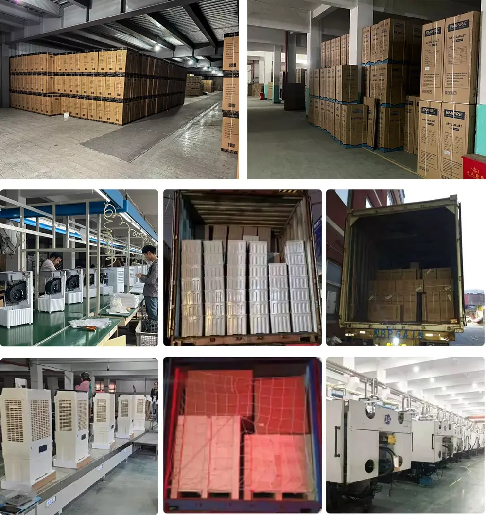 Spodní část je vybavena univerzálními kolečky, která umožňují hladký a snadný pohyb a flexibilní přepínání mezi různými prostory, jako jsou dílny, obývací pokoje a balkony. Tento vzduchový chladič nevyžaduje žádnou odbornou instalaci; lze jej použít jednoduše připojením, čímž se výrazně sníží zábrana k použití.